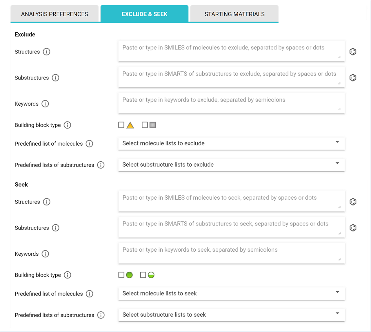 Exclude & Seek allows you to find pathways that avoid (exclude) unwanted molecules or reactions, or include (seek) desired ones.