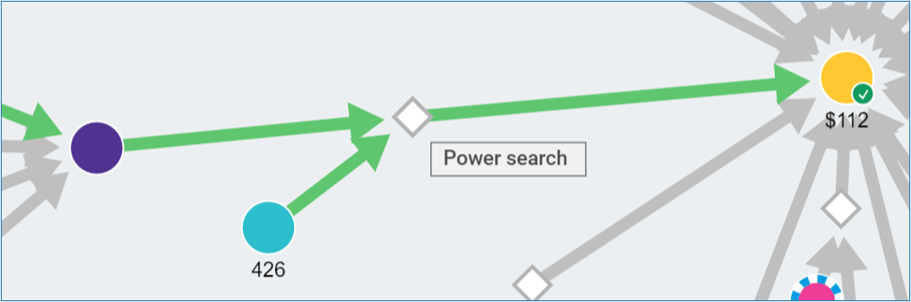 In Graph View, molecules and reactions are represented by color-coded, round and diamond nodes, respectively. See the “Graph View Legend” section below for more details.