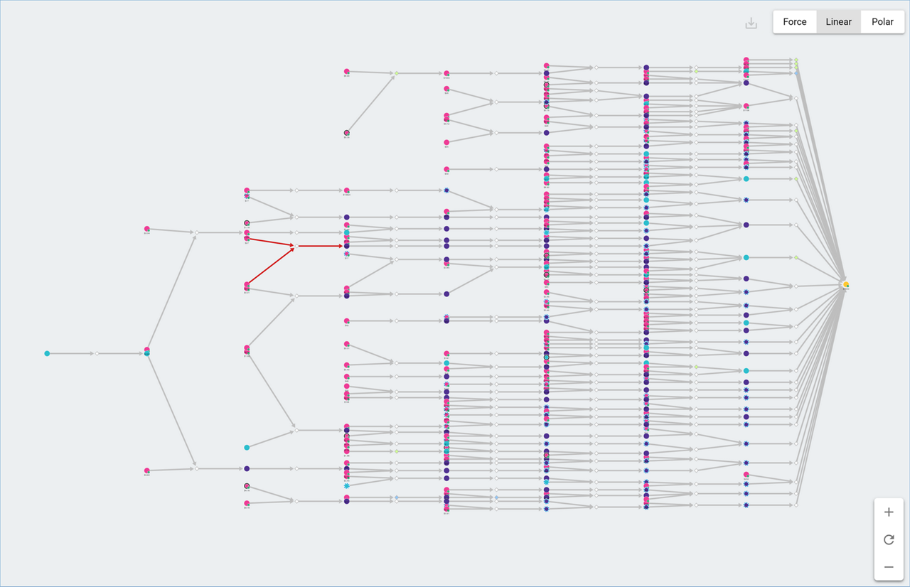 There are three distinct ways to view the graph of pathways: Force, Linear, and Polar.