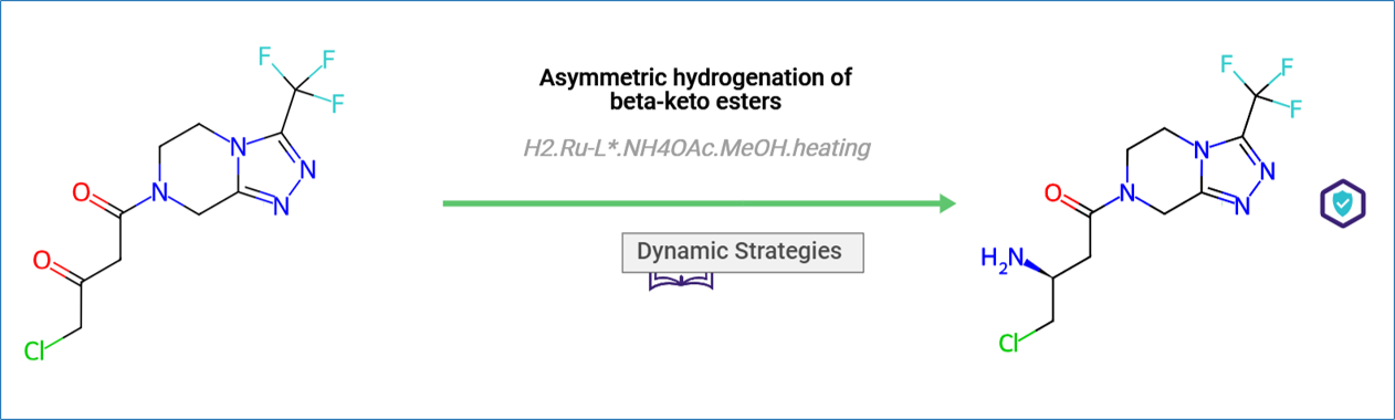 Hover over any colored reaction arrow to see a label indicating whether the reaction is nonselective or diastereoselective only (red arrows), or whether it is suggested as part of a Strategy or Power Search option (green arrows).